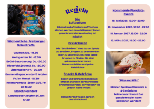 -> Du kannst anfragen, ob ein bestimmtes Spiel da ist, oder jemand das, das du mitbringst, erklären kann.